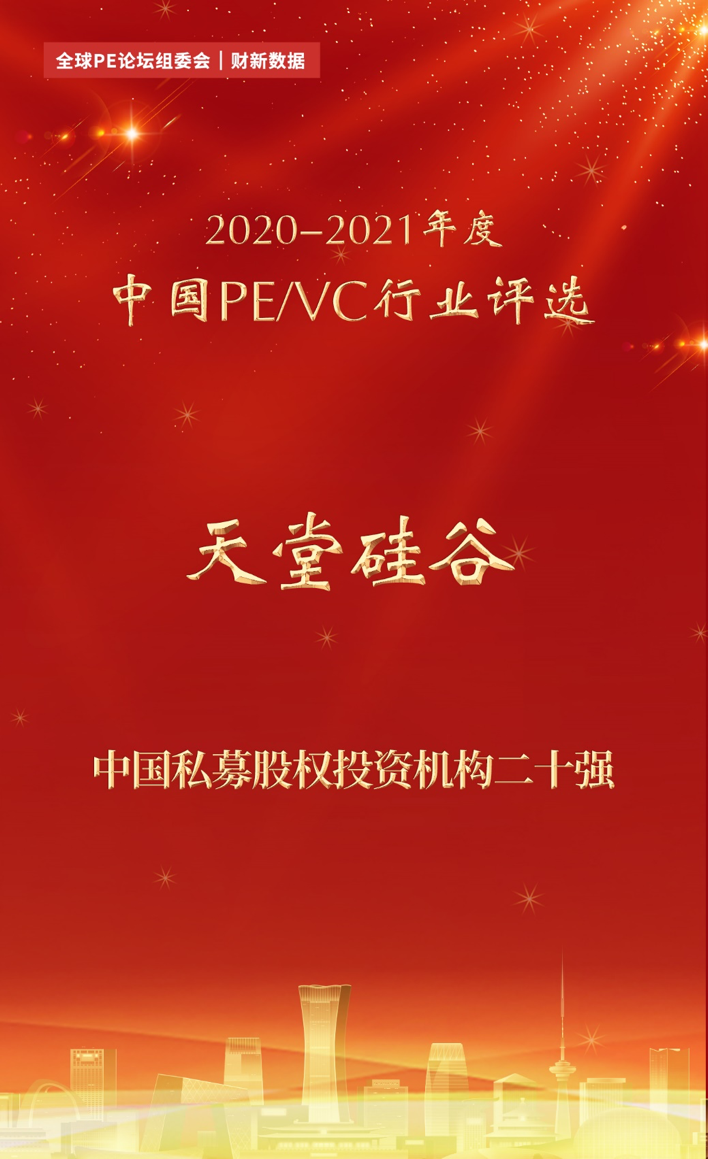 天堂硅谷榮膺2021全球PE論壇“中國私募股權(quán)投資機(jī)構(gòu)二十強(qiáng)”等多項(xiàng)大獎