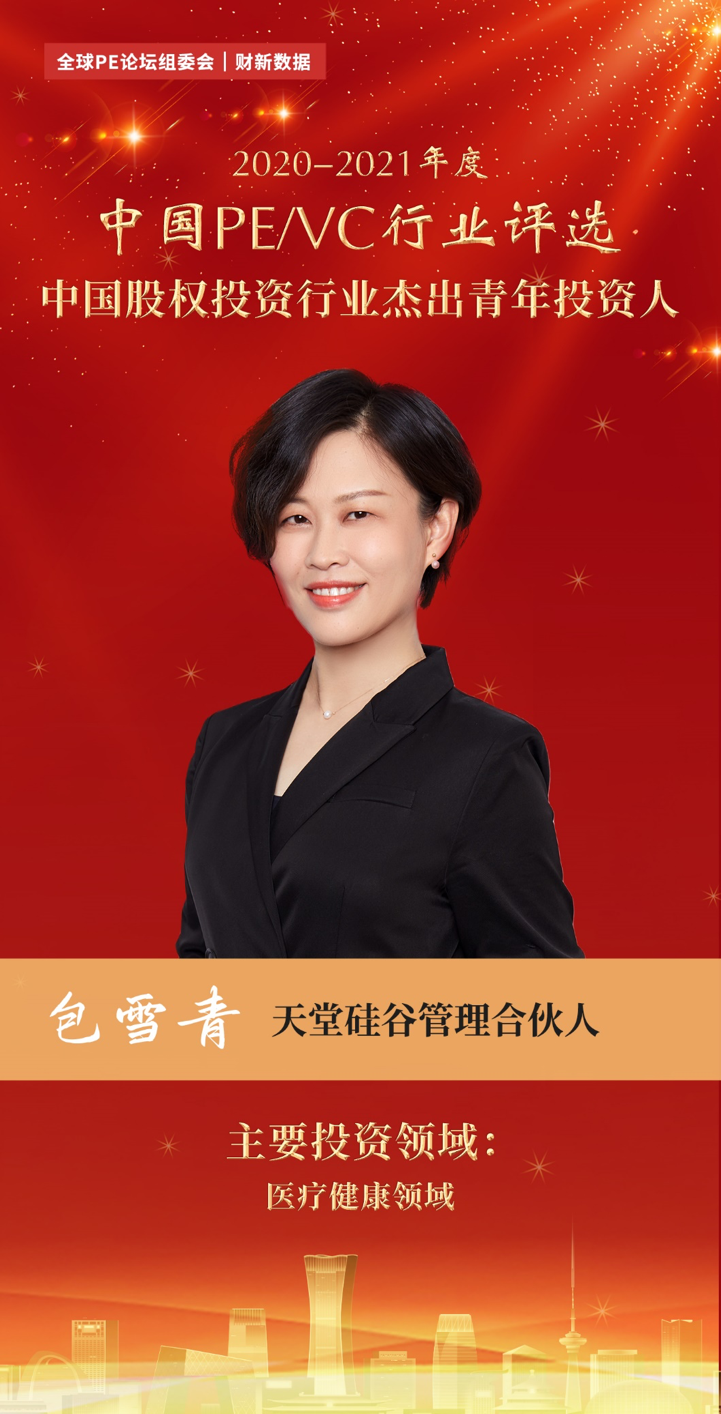 近日,由全球PE論壇組委會、財(cái)新數(shù)據(jù)主辦的2020-2021年度“中國PE/VC行業(yè)評選”榜單揭曉,天堂硅谷憑借優(yōu)異的募資、投資、退出業(yè)績,榮膺“2020-2021年度中國私募股權(quán)投資機(jī)構(gòu)二十強(qiáng)”,天堂硅谷管理合伙人包雪青女士榮膺“2020-2021年度中國股權(quán)投資行業(yè)杰出青年投資人”。