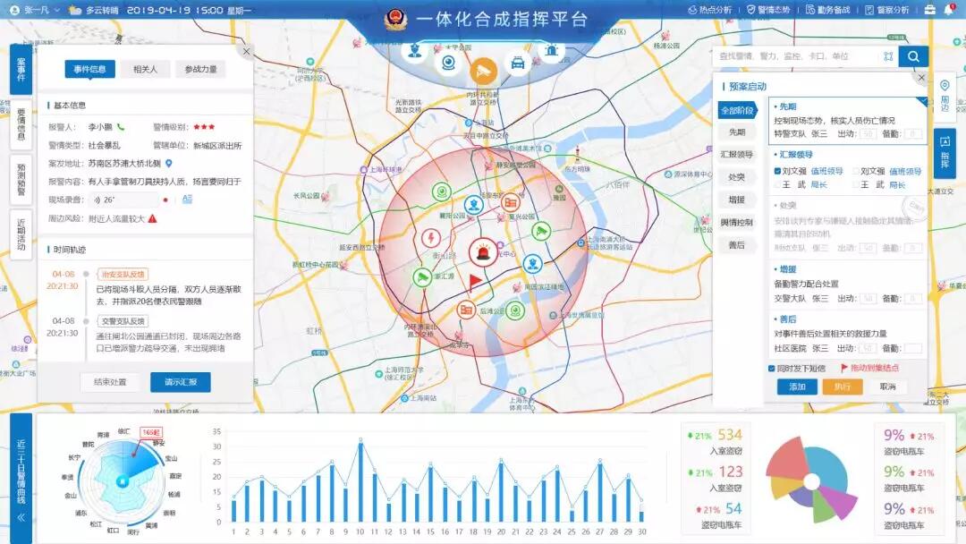 以松江分局為例,產(chǎn)品覆蓋常態(tài)指揮、應(yīng)急指揮和大保指揮三大場(chǎng)景,滿(mǎn)足了公安“一屏觀天下、一網(wǎng)治全城”的需求。同時(shí),其橫向聯(lián)動(dòng)幾乎所有警務(wù)部門(mén),縱向貫通派出所以及其下屬最基礎(chǔ)的職能機(jī)構(gòu),真正實(shí)現(xiàn)了跨層級(jí)、跨警種的合成作戰(zhàn)。